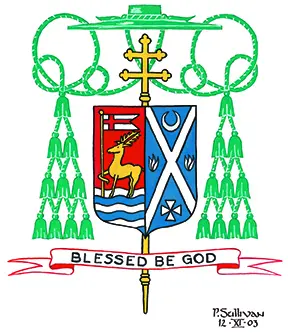 For his motto His Excellency Archbishop Mansell has retained the invocation, “BLESSED BE GOD.” This prayer, which is taken from Psalm 68:36 and Tobit 13:1, evokes the recitation of “The Divine Praises” and expresses Archbishop Mansell’s deep belief that each of us is called to give glory and praise to God in all that we do.