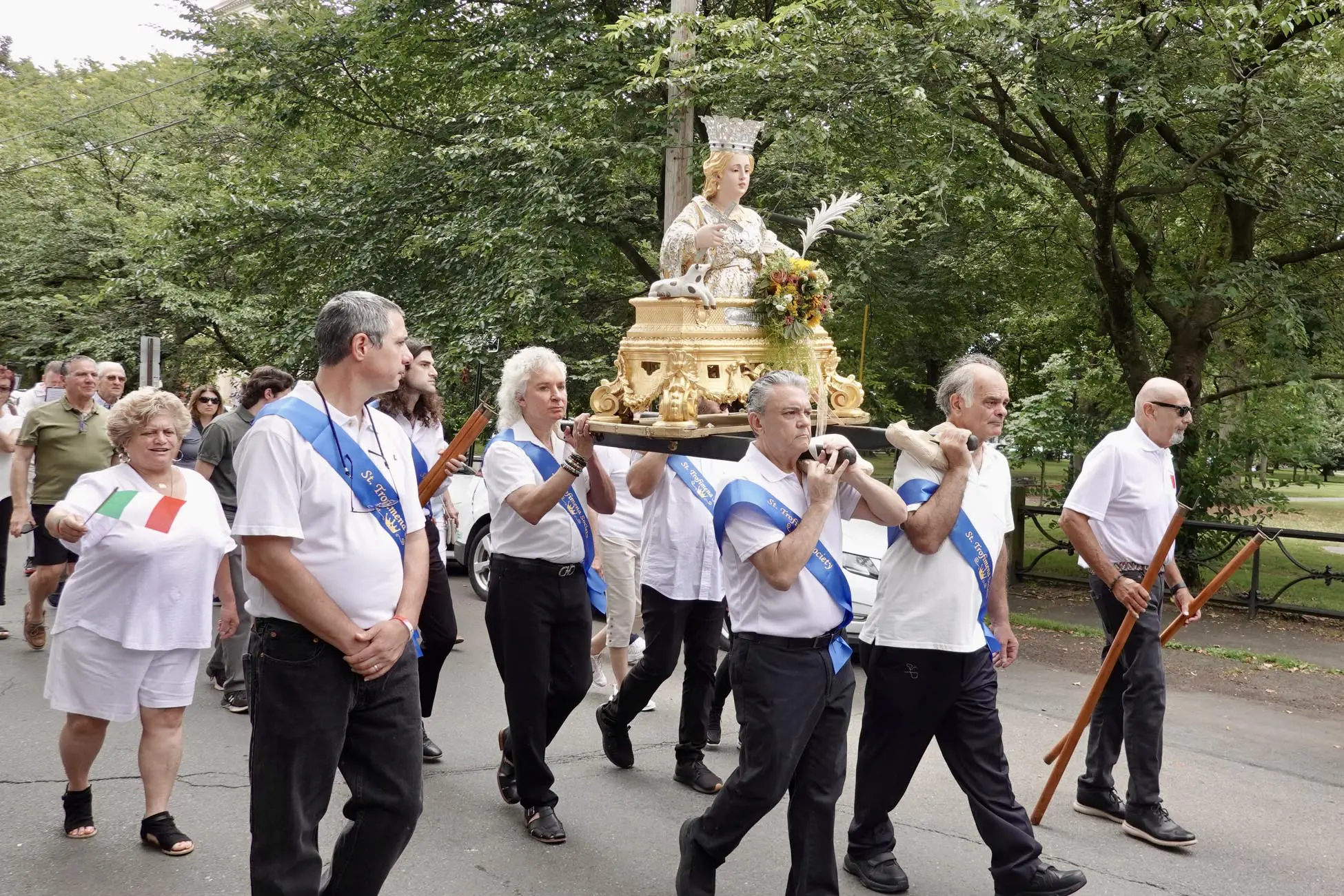 Story by Joe Pisani Several hundred Italian-Americans marched in a procession three blocks long in honor of St. Trofimena, a fourth century virgin martyr, whose statue was held aloft on…Read More “Procession in New Haven Celebrates Catholic Faith, Italian-American Cultures”